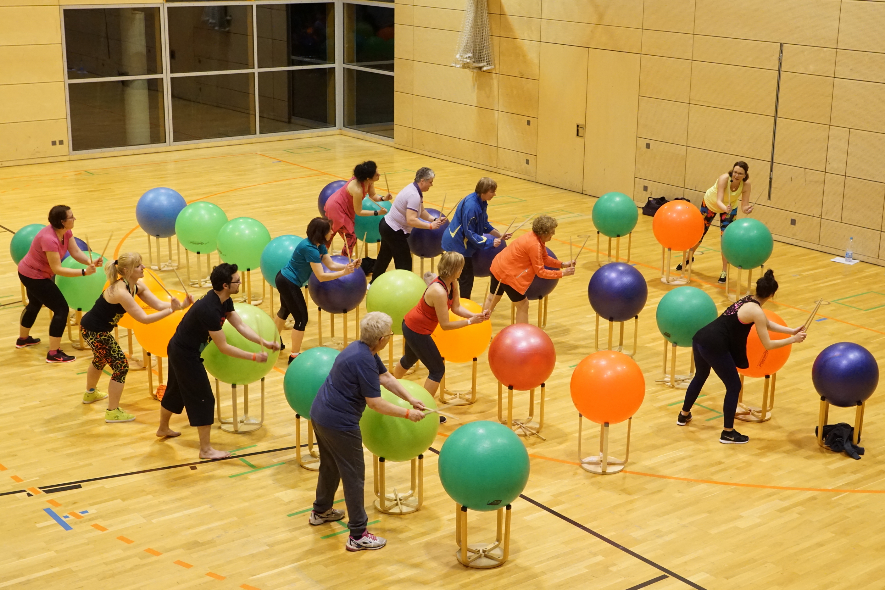 Bei Drums Alive® wird zu motivierenden Beats mit Drumsticks auf Gymnastikbällen getrommelt. Verschiedene Trommelrhythmen, dazu passende Bewegungen und ergänzende Schrittfolgen ergeben eine sehr abwechslungsreiche Fitnessstunde. Neben der Verbesserung von Ausdauer und Kraft werden ergänzend Impulse für die Koordination gegeben. Durch die Konzentration auf Takt und Rhythmus bekommt man nach einem anstrengenden Tag den Kopf frei und jede Menge Spaß ist auch mit dabei.