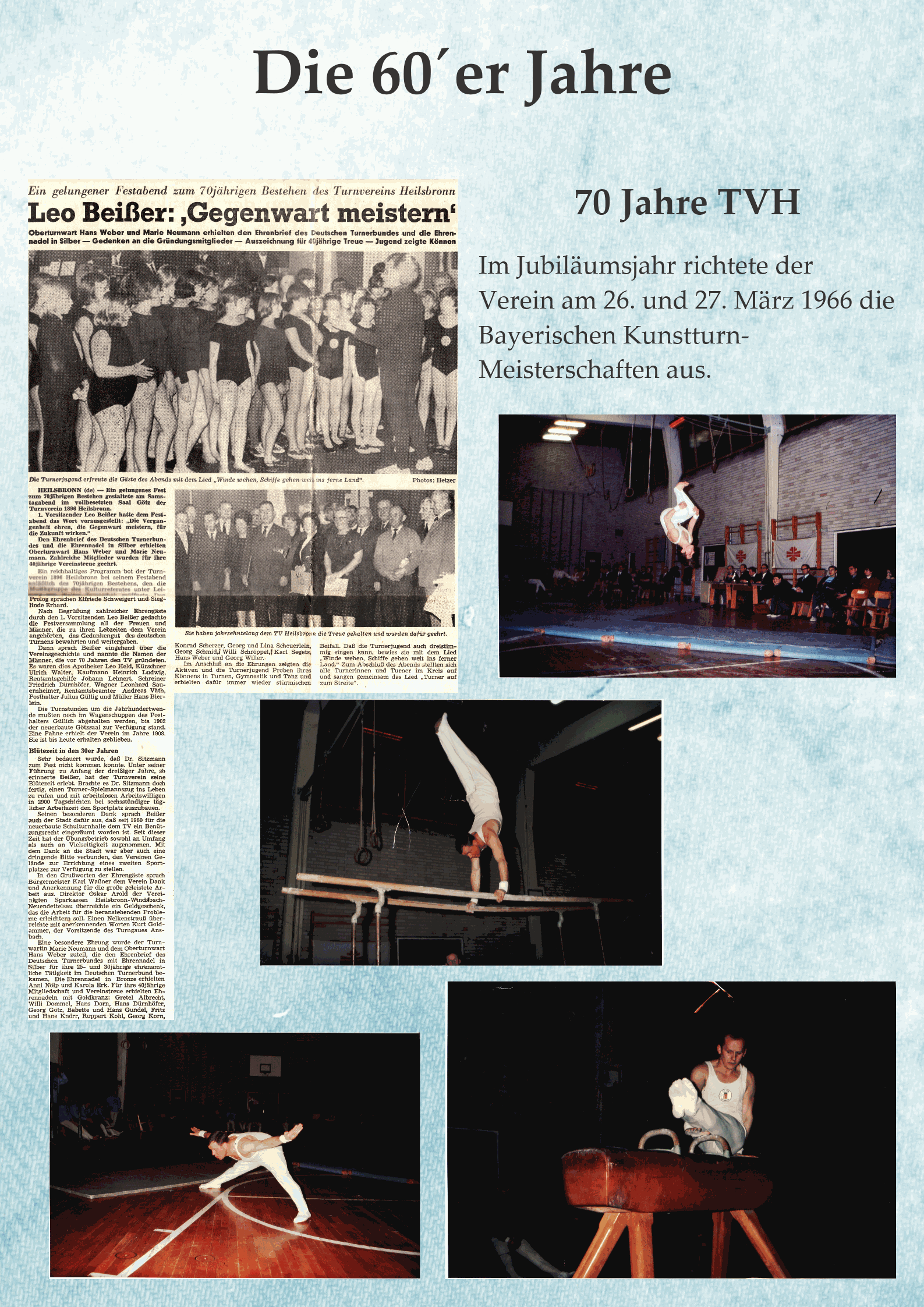 Im Jubiläumsjahr zur 70. Wiederkehr der Vereinsgründung konnten am 26. und 27. März 1966 die Bayerischen Kunstturn-Meisterschaften ausgerichtet werden.