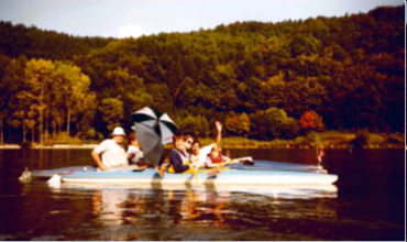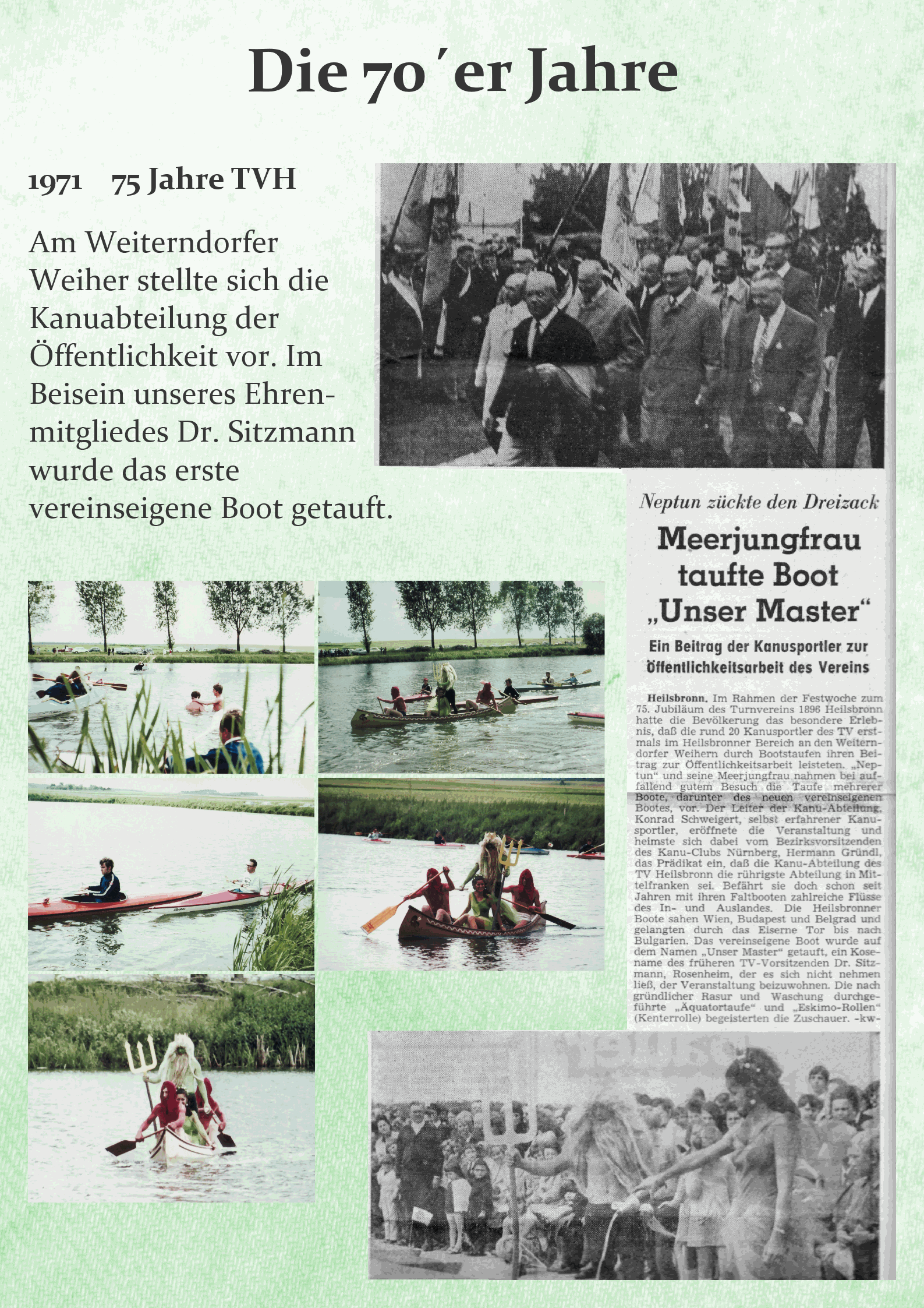 Am Weiterndorfer Weiher stellte sich die Kanuabteilung der Öffentlichkeit vor. Im Beisein unseres Ehrenmitgliedes Dr. Sitzmann, wurde das erste vereinseigene Boot getauft.
