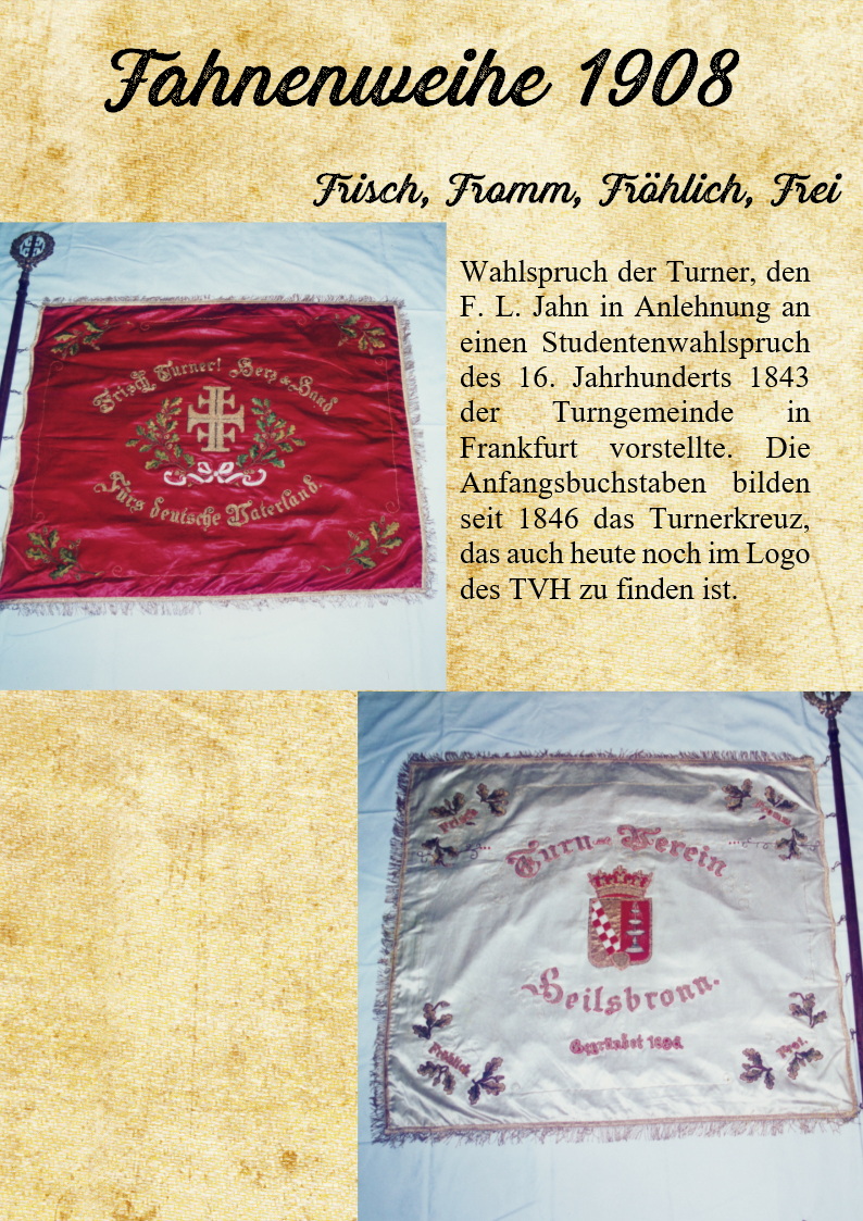 Das Jahr 1908 brachte ein großes Ereignis. In Verbindung mit dem 38. Gau-Turnfest des Turngaus Ansbach fand die Weihe der Vereinsfahne statt.