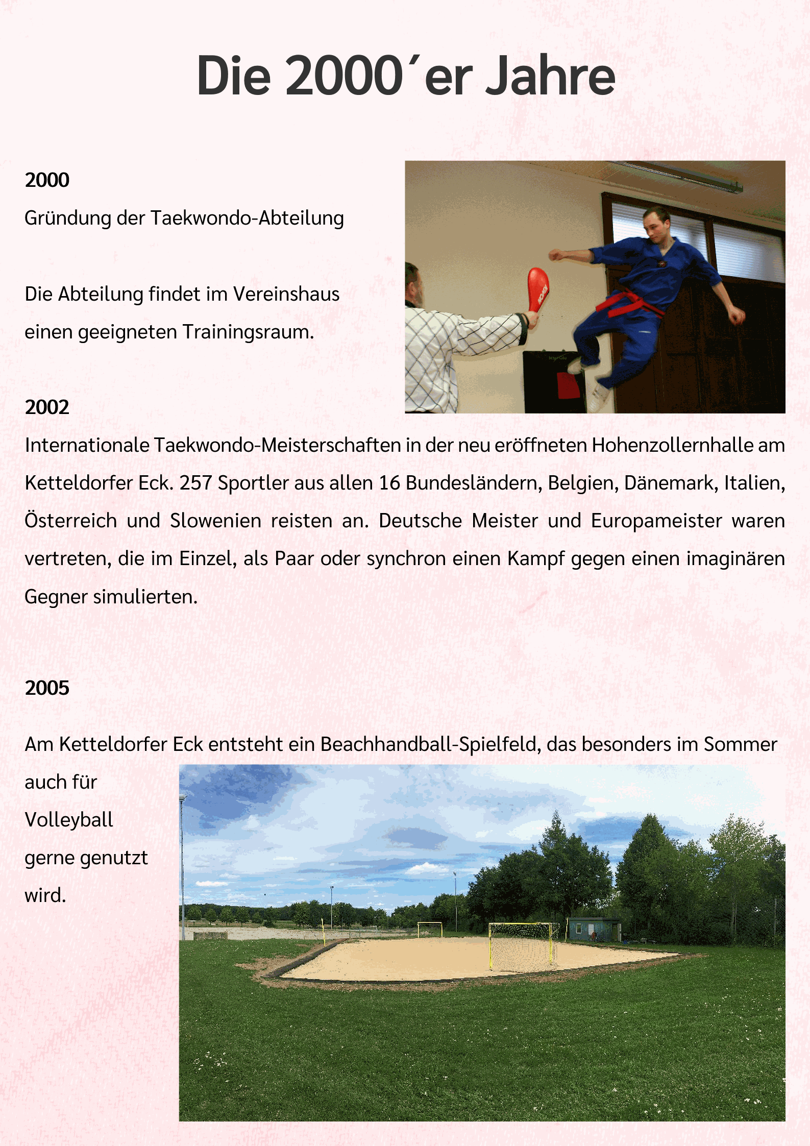Die Handball-Abteilung stellte 2005 mit viel Engagement und Fleiß das Beach-Handballfeld fertig. Dadurch konnten die aktuellen Trendsportarten Beach-Handball und Beach-Volleyball in das Sportprogramm aufgenommen werden.