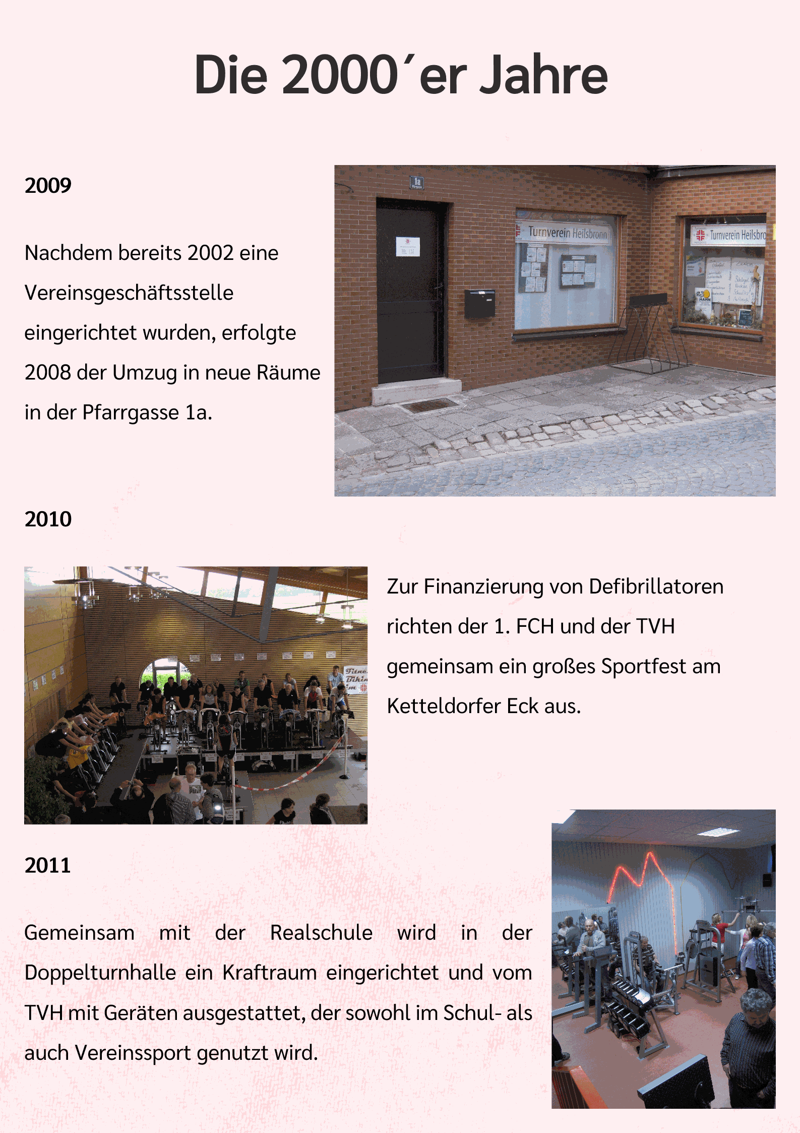 Zunehmende Verwaltungsarbeiten und beengte Raumverhältnisse führten Ende 2008 zur personellen Verstärkung der Vereinsgeschäftsstelle und zum Umzug in die neuen Räume in der Pfarrgasse 1a.